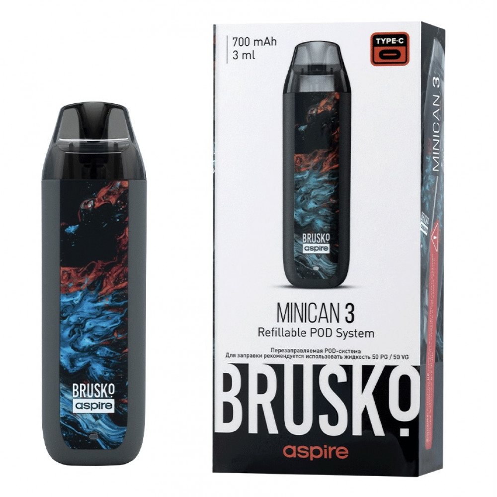 Перезаправляемая Под-Система Бруско Миникан 3 (Brusko Minican 3) 700 mah, Серый Флюид - купить в Заинске